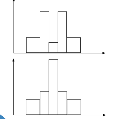 Two Peaks Result of combining 2 different processes, eg. body mass of males and females