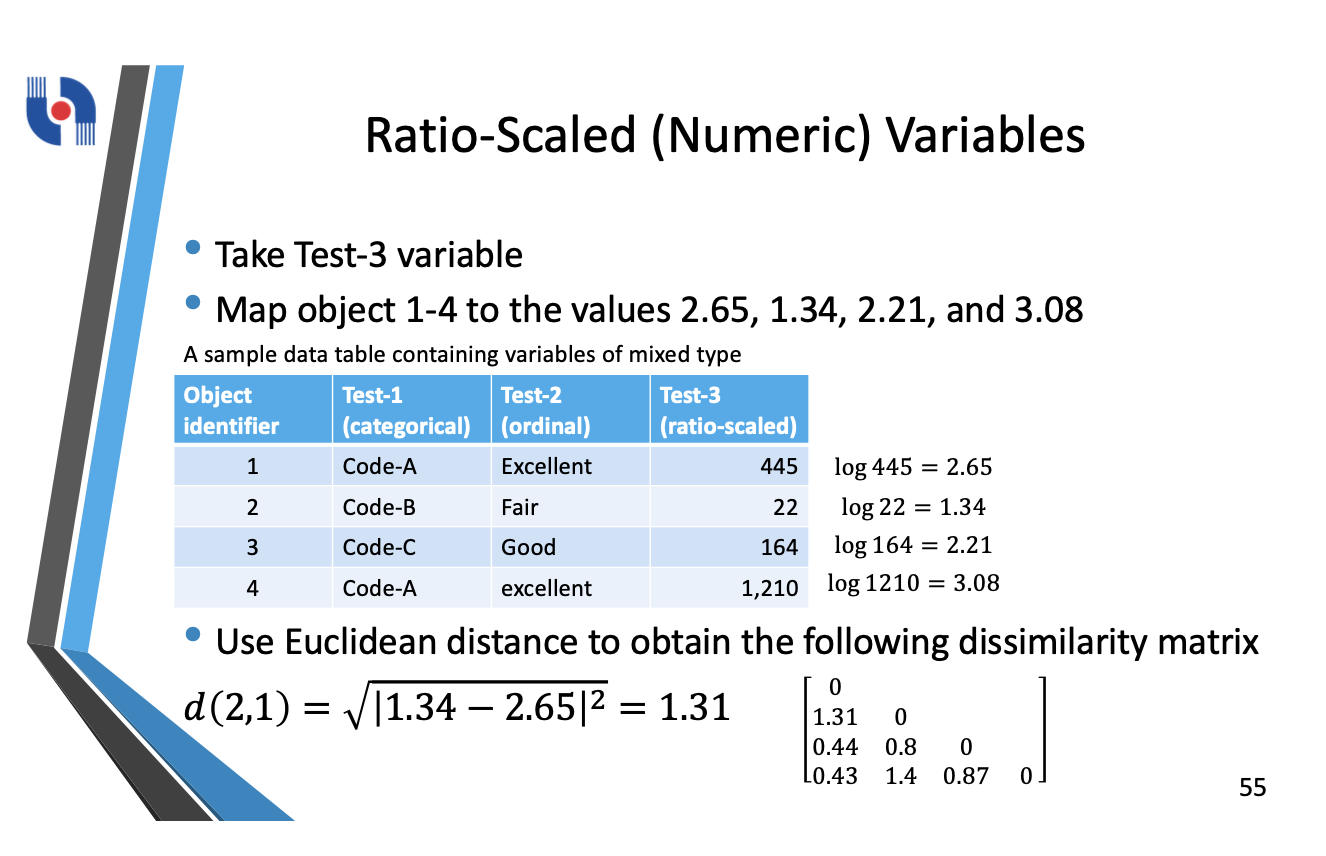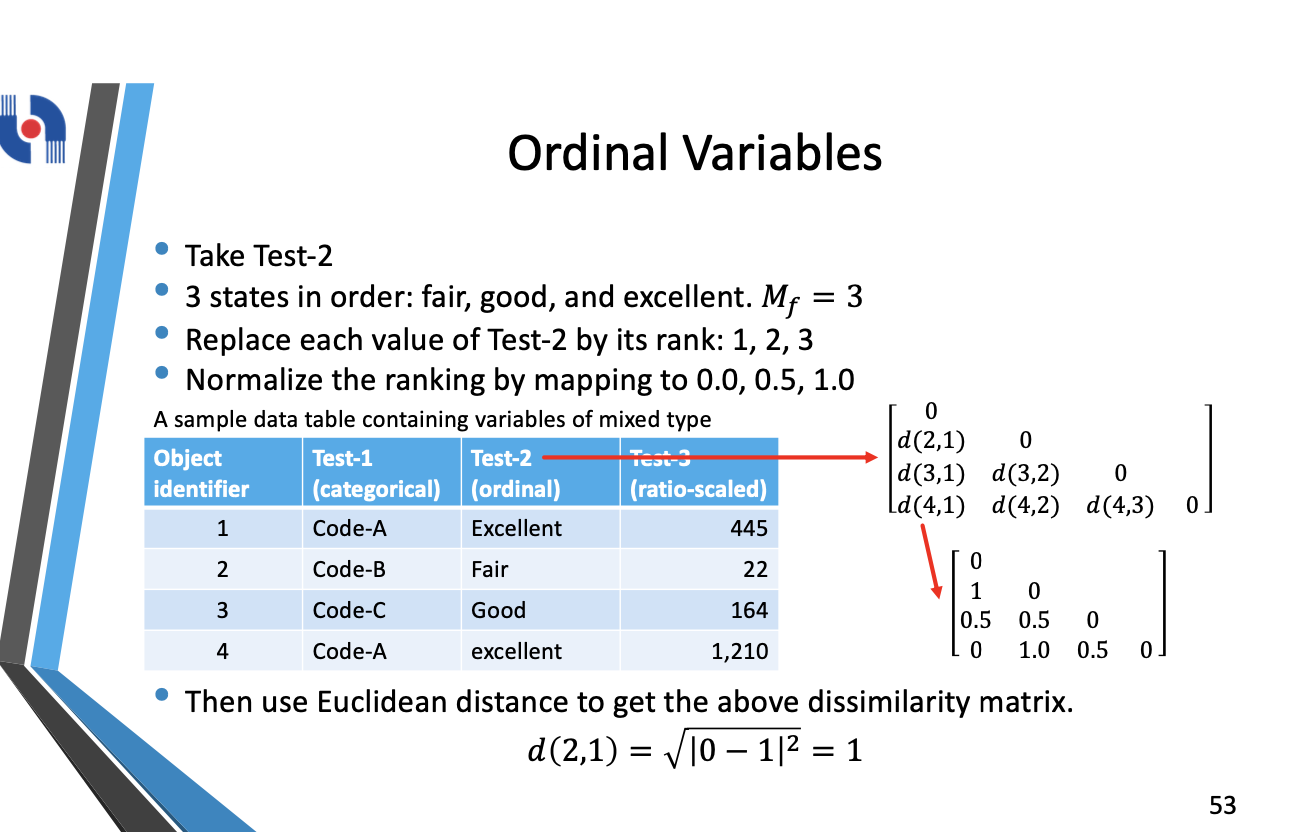 Characteristics in Data Characteristics describe single attributes, dissimilarity matrix uses multiple attributes